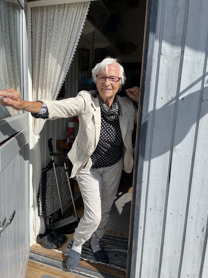 Ruth, der bor i Kristiansand, kører selv i bil til Skovgårde via færgen til Hirtshals. Hun virker helt frisk, selvom hun har haft en blodprop i 2018 og i januar 2024 faldt ned af en trappe og slog sig slemt. Ruth bor fortsat i eget hus.