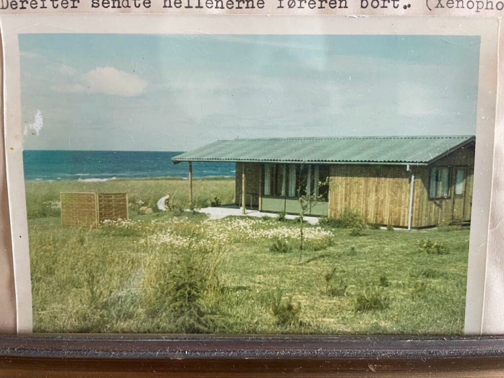 Fra starten var huset i råt træ, så blev det mørkbejset og i dag er det lysegråt.
